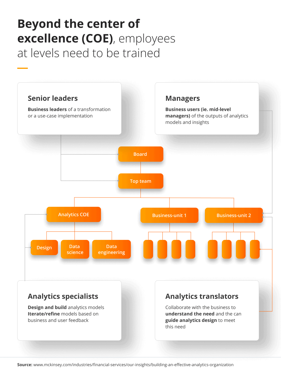 Additionally, organizations that place importance on customer loyalty, analyzing churn, and retaining existing customers should establish a center of excellence for analytics that is maintained by qualified data scientists and data engineers. This center can help in bringing forth cross-functional teams and ensures a hub of interconnectivity that allows for unilateral decision-making made due to data analytics to affect all aspects of the company.