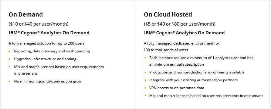 - You can try IBM® Cognos® for free for 30 days and then choose between two cloud-based solutions: