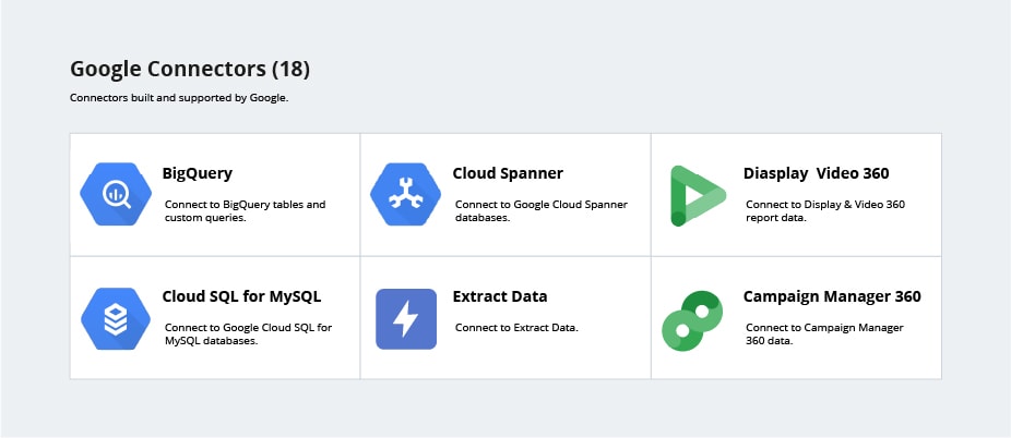 GDS is completely free for all companies, large or small. However, there are only 18 Google connectors that are free of charge – for the rest of them (there are 464 partner connectors to date) you need to pay separately (only if you need them, of course).