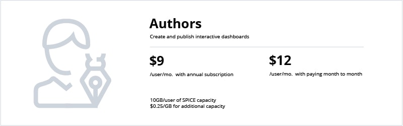 - Plus, QuickSight is the first BI solution to offer pay-per-session pricing – this means that you only pay when someone actually uses any dashboards or reports (1 session = 30 minutes from sign in, no matter how many dashboards are accessed).