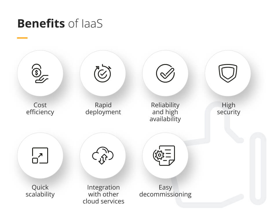IaaS offers several benefits for businesses, enabling them to leverage cloud-based virtualised infrastructure to meet their computing needs. Some of the key benefits include: