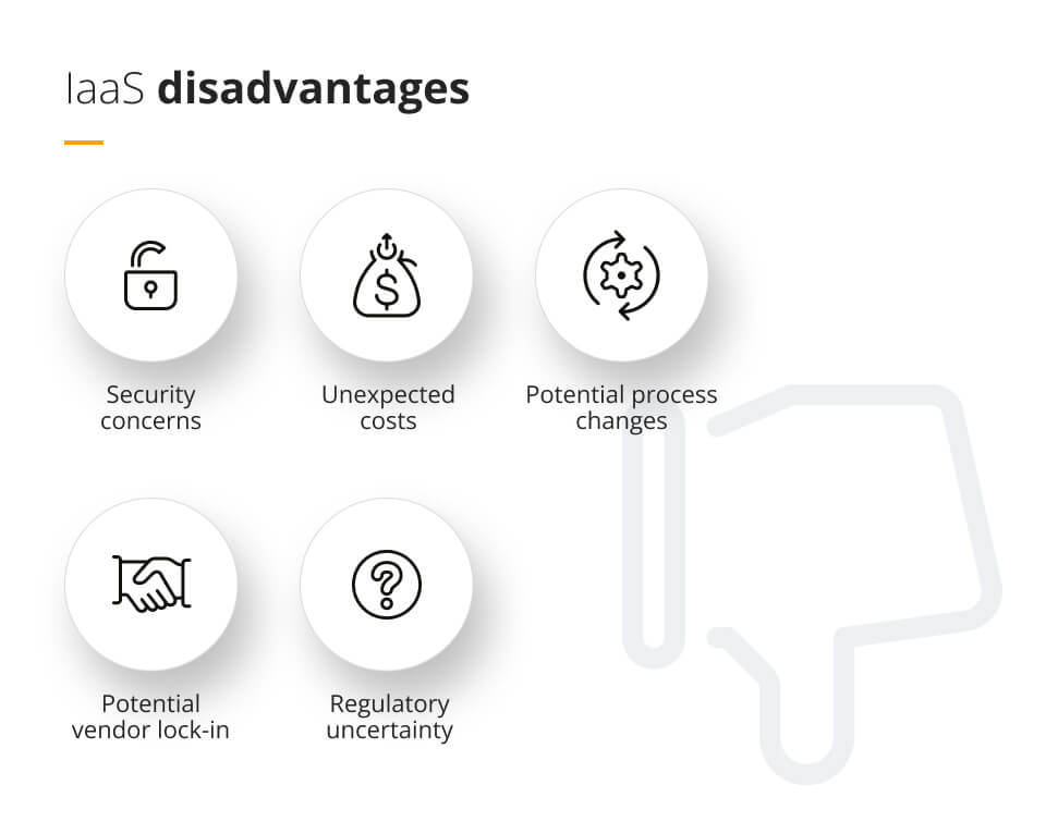 Despite benefits it offers, it’s also worth considering some potential disadvantages associated with IaaS, including: