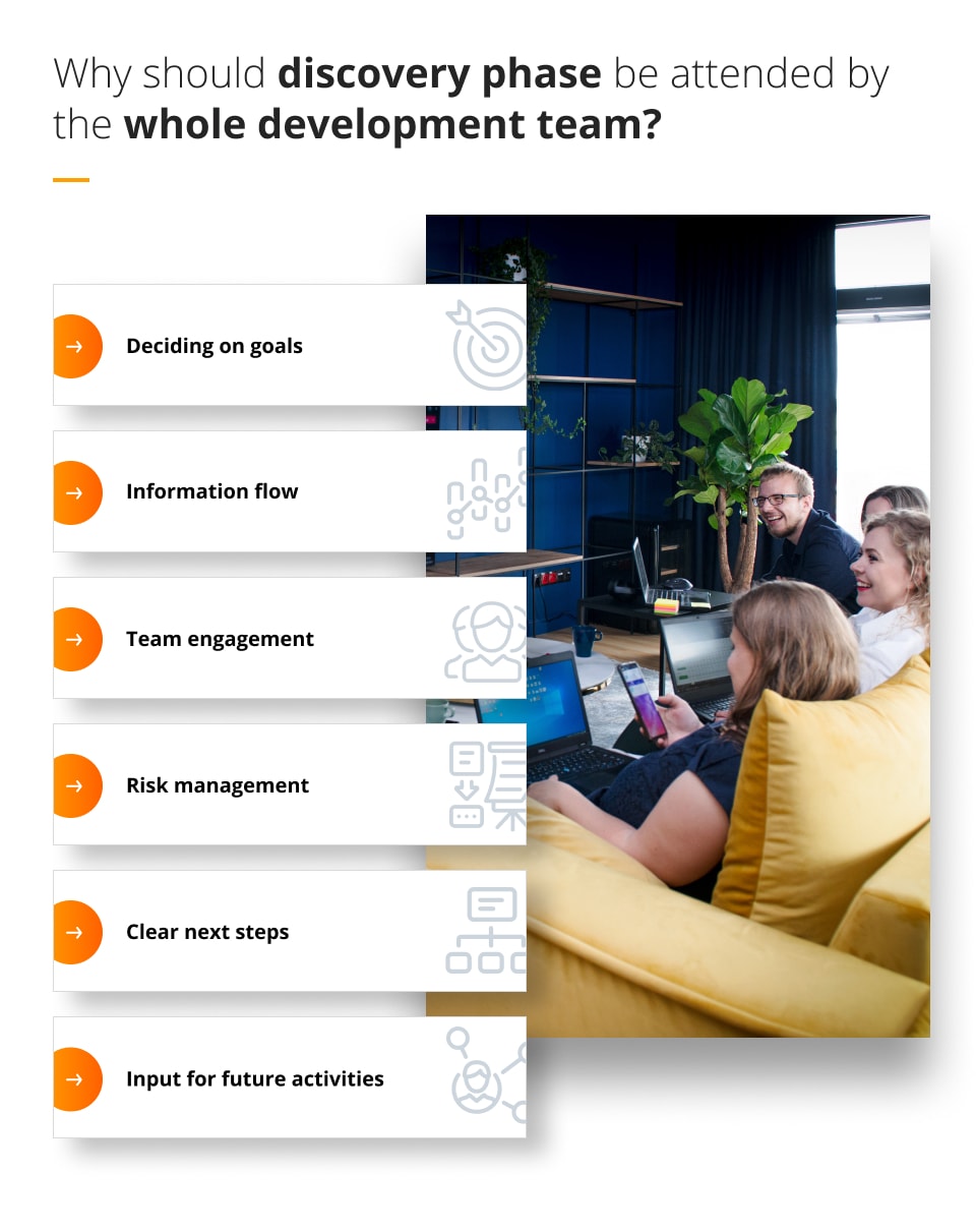 But given its huge importance for the final success of the whole project, it is crucial that the discovery phase is attended not by just a few people responsible for it, but also by all members of the development team. Let us explain to you why we believe such an approach is so beneficial.