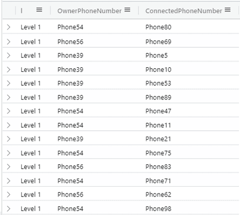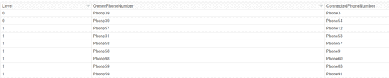 The query above returns information about the contact with people who have the phones ‘Phone54′,’Phone39′,’Phone56’ at the following levels: