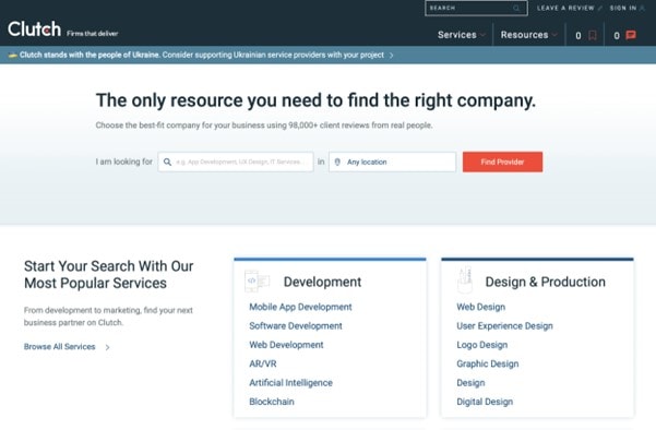 Their team collects genuine clients’ feedback and analyses global industry data, giving businesses access to insights they need to find reliable partners. Clutch.co conducts in-depth interviews through phone calls and online form submissions with clients of each company they list, speaking about the quality of their services and many important aspects of collaboration. All reviews come with a rating displayed next to each company’s profile.