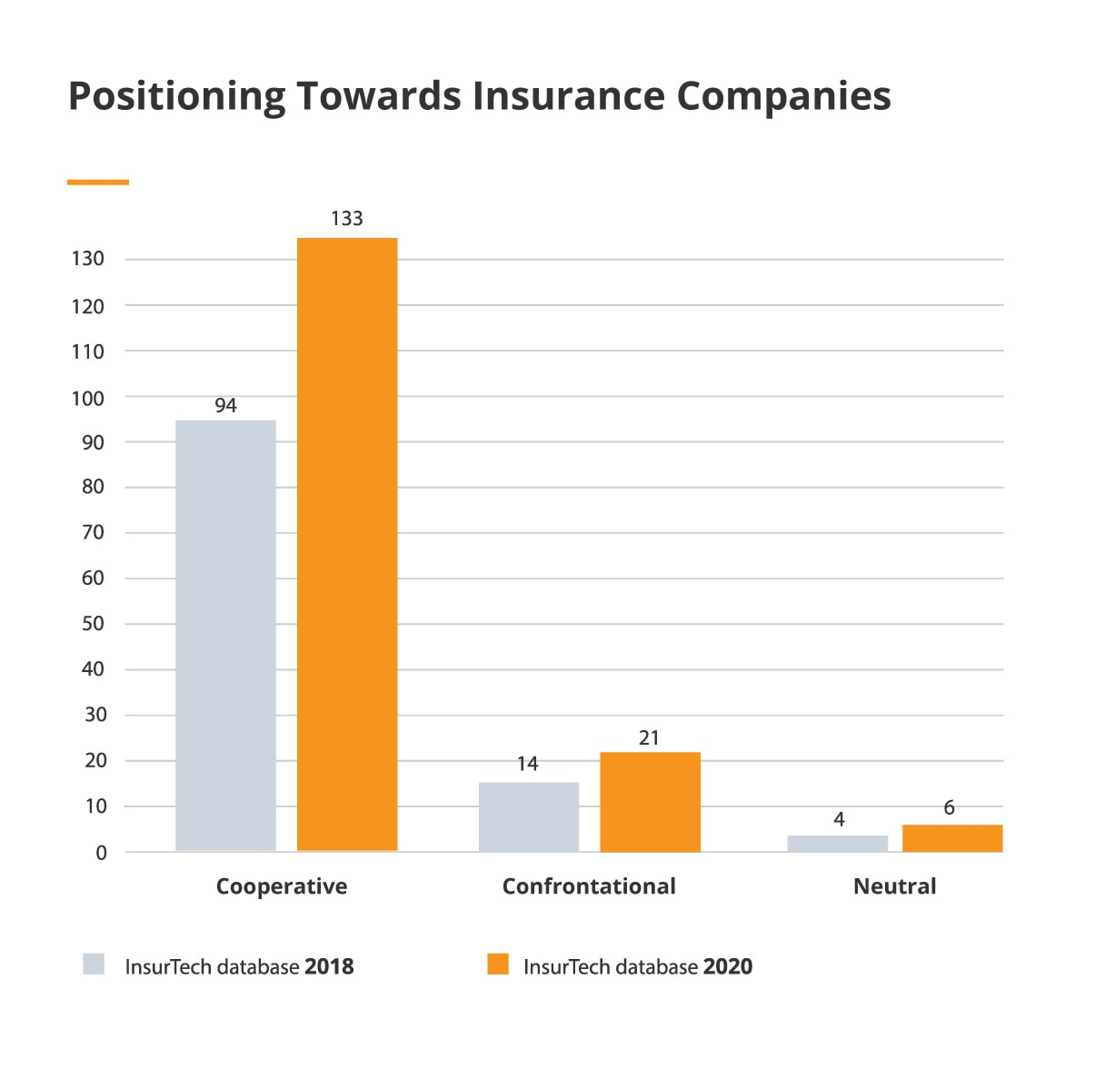 Overall, the newly recorded InsurTechs have a more collaborative orientation: 86% (83% overall analysis 2020) cooperative and 10% (13% comprehensive analysis 2020) competitive.