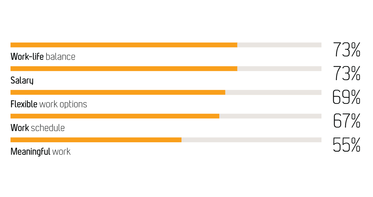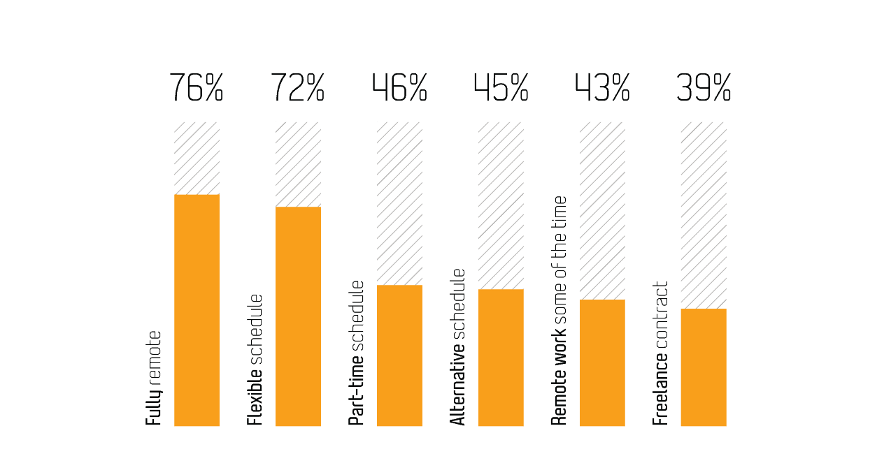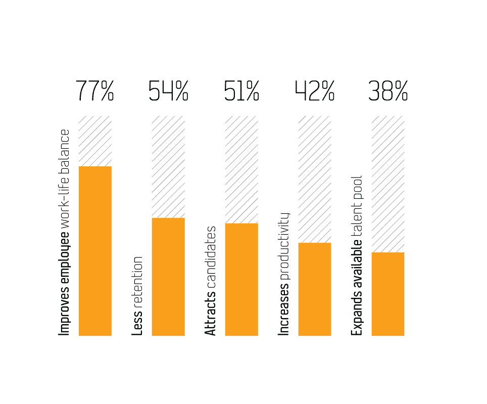 - Education and experience – work flexibility appeals to highly educated and experienced workers since 78% of respondents
