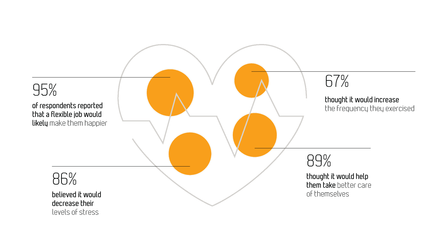 44% of responders said a job with flexibility would have a “huge improvement” on their overall quality of life and 53% said it would have a “positive impact.”