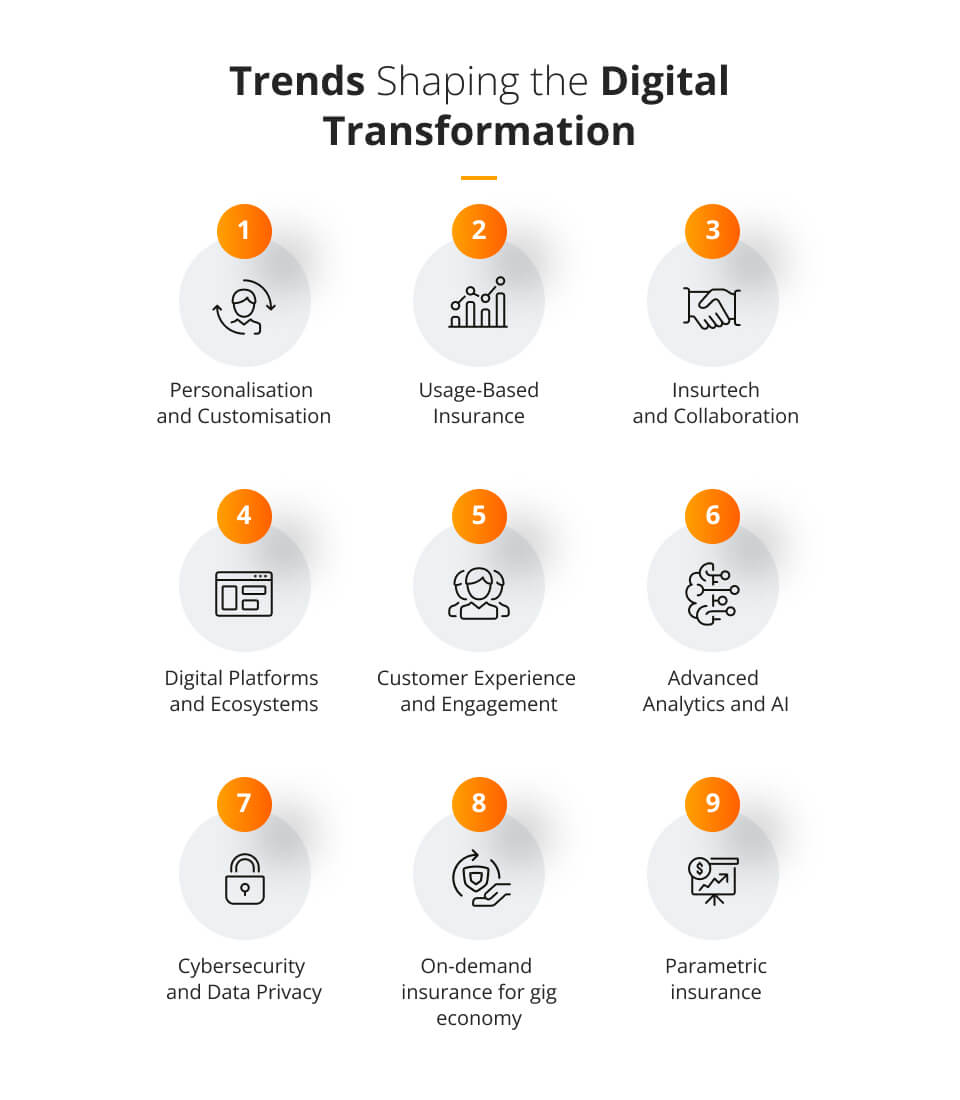 The future of insurance is being shaped by several key trends that are driving the digital transformation of the industry. These trends are reshaping the way insurance products are developed, distributed, and serviced, and they have a significant impact on customer expectations and the overall insurance landscape.