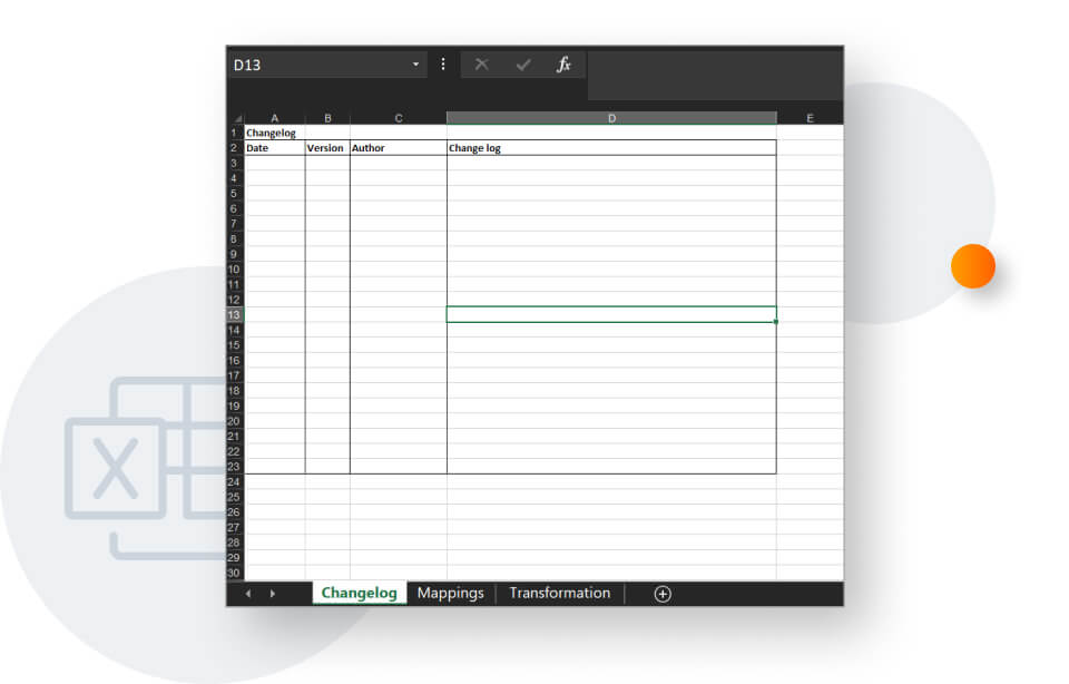 - a transformations tab – if the required transformations are more complex, it is worth describing them in a separate sheet;
