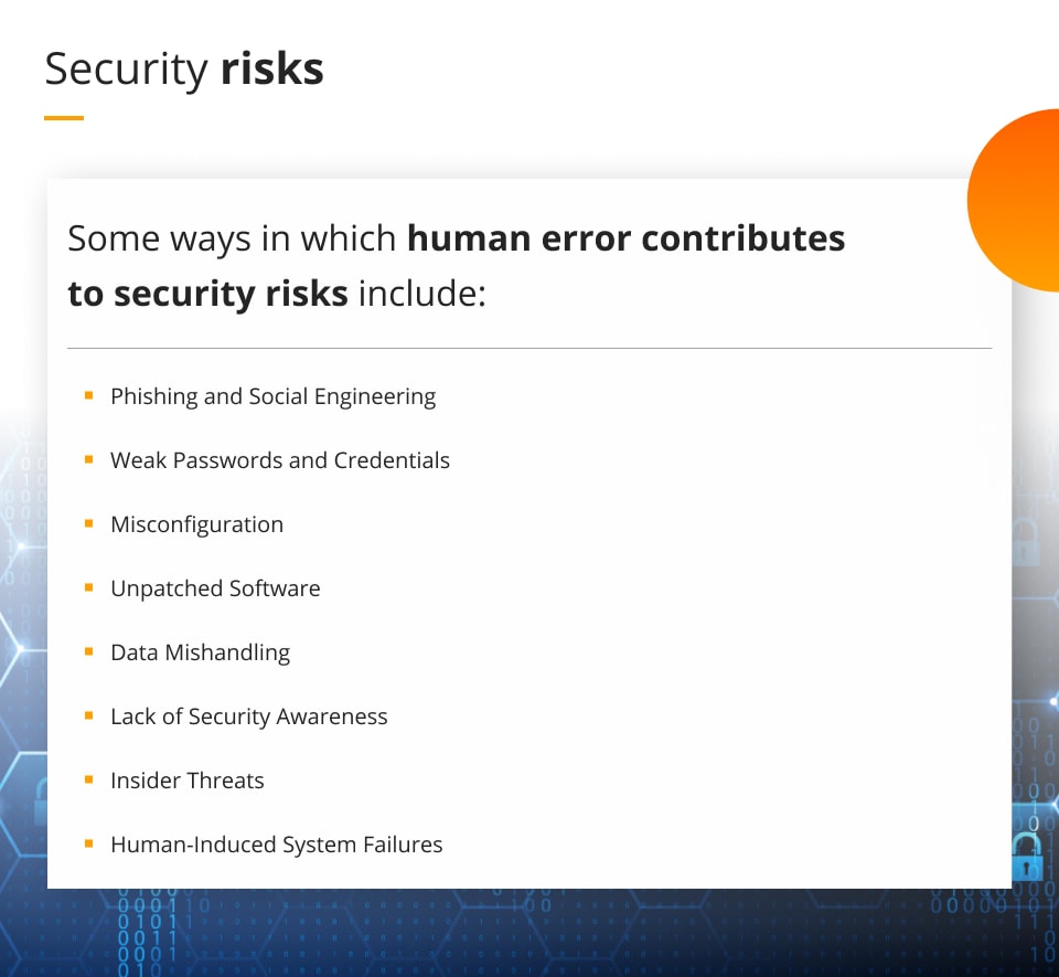 In complex IT environments, human factors can cause system failures or downtime that expose the organisation to potential attacks or data loss.