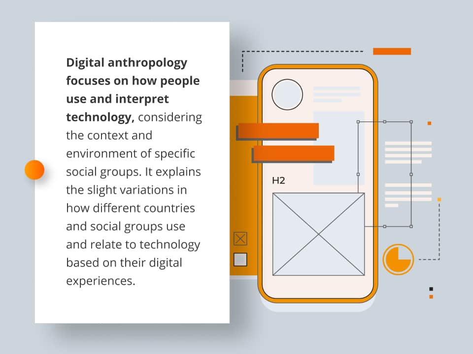 Digital anthropology focuses on how people use and interpret technology, considering the context and environment of specific social groups. It explains the slight variations in how different countries and social groups use and relate to technology based on their digital experiences. This anthropological study of the human-digital-era technology relationship is increasingly influential in designing software solutions, driving user-friendly innovations in the retail sector.