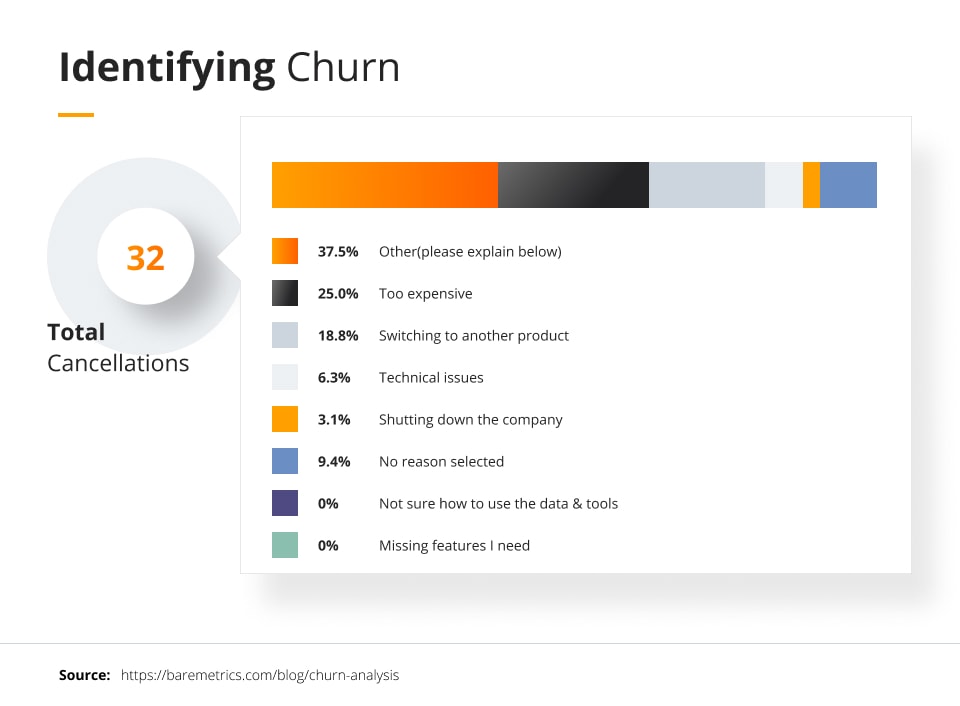 The first step in preventing churn is identifying churn to make sure the churn rate is acceptable and normal. This can be achieved through gathering customer feedback, which is done through monitoring review sites or community forums, reviewing survey results, and reaching out to unhappy customers for feedback (like the off-boarding survey above).
