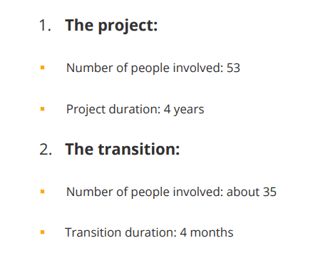 This article is based on our own real experience with transitioning an IT project – a situation where we had to pass a project to another provider. In order to give you an idea concerning the scale of the project, we present you with some of the most important numbers.