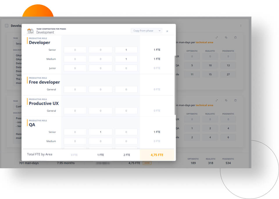This allows us to provide our clients with more detailed and precise time and cost estimates, and — more importantly — build a team that is better adjusted to project needs. For instance, we can create a good balance between backend and frontend developers — especially if one technical area requires much more work than the other. This provides us with greater flexibility than Excel.