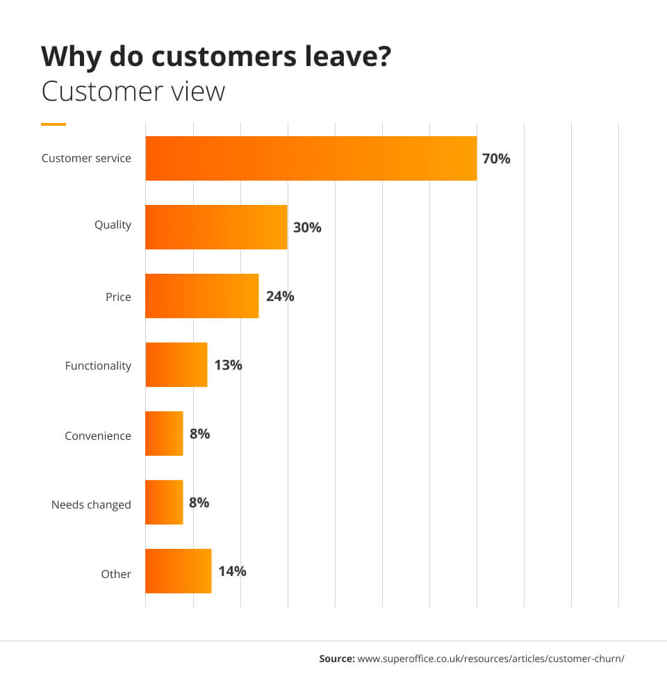 One of the worst reasons to lose a customer is a simple and avoidable mistake, like shipping the wrong item to the wrong customer. Understanding why customers churn can help a business learn more about customer priorities through customer feedback, identify the business’ deficits, stop customers from leaving, and improve the overall customer experience.