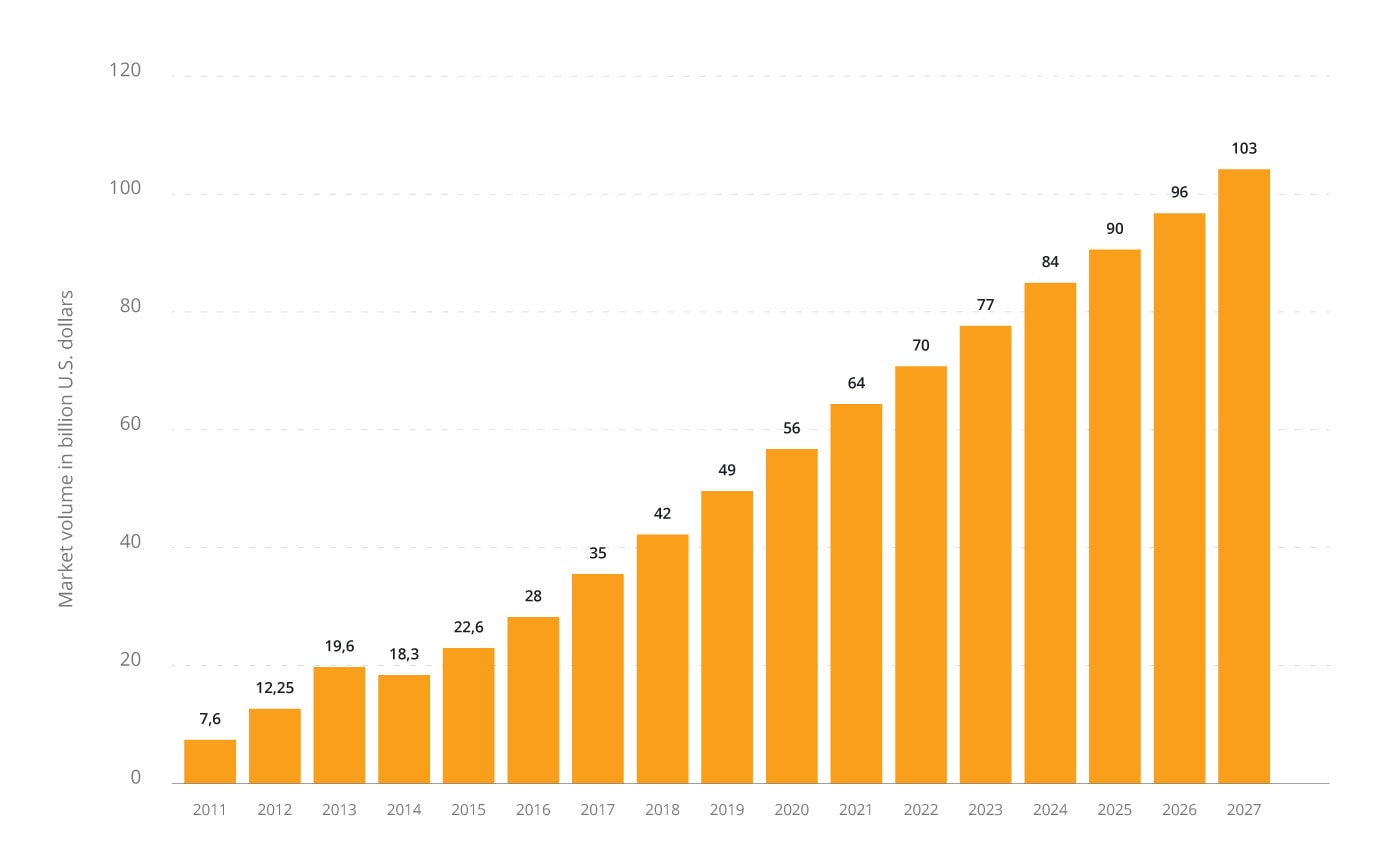 By 2027, the global Big Data market is projected to reach $103 billion.