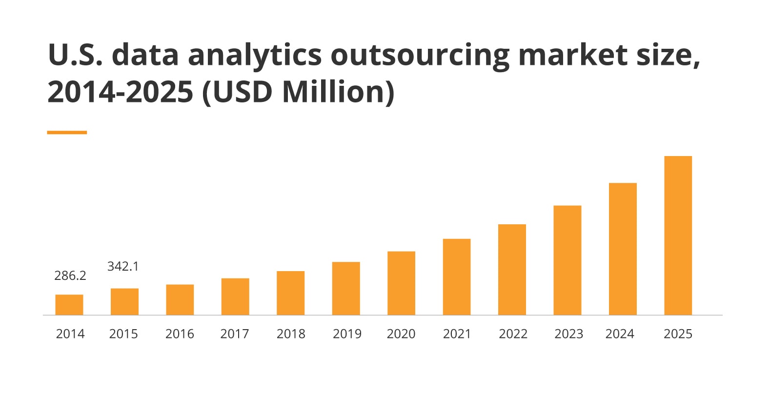 According to Data Analytics Outsourcing Market – Growth, Trends, COVID-19, and Forecasts (2021 – 2026) by Mordor Intelligence, in 2020, the global data analytics outsourcing market size was valued at USD 3.04 billion. By 2026, it is expected to reach USD 9.46 billion at a Compounded Annual Growth Rate (CAGR) of 21.5% during the period from 2021 to 2026.