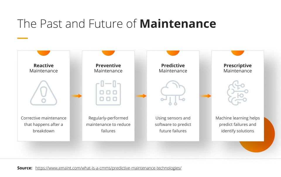Some mobile robots have the ability to collect data and interpret it using artificial intelligence without any of the human errors that data interpreted by humans would be liable to. This means that employing robots in predictive maintenance not only expands the scope of maintenance but also results in more accurate information about necessary maintenance. Finally, robots are cheaper and easier to integrate than extra equipment sensors, making robotics the more practical option in predictive maintenance.