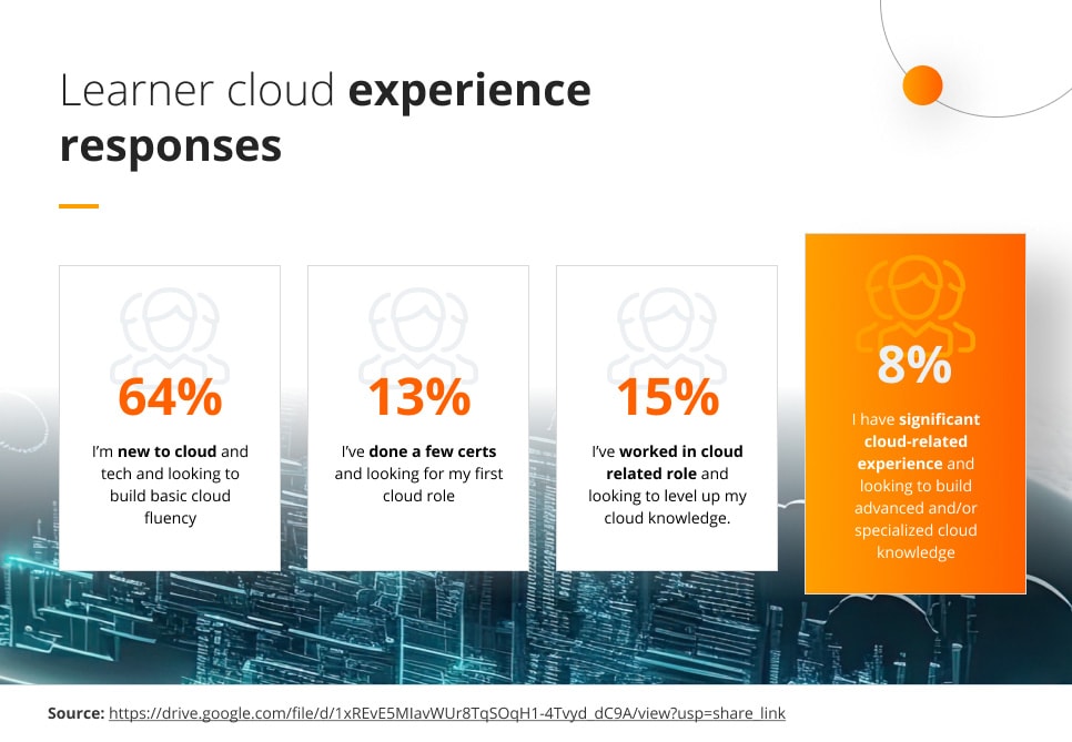 Pluralsight’s 2022 State of Cloud Report indicated a severe lack of experience and knowledge by its otherwise highly skilled respondents, with a staggering 64% declaring that they are ‘brand new’ to cloud and tech, and only 8% classified themselves as having ‘significant cloud-related experience’.