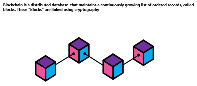 He described blockchain as a distributed database (also referred to in the finance world as a distributed ledger technology) that maintains a continuous growing list of records called blocks, held together by a series of cryptographic algorithms.