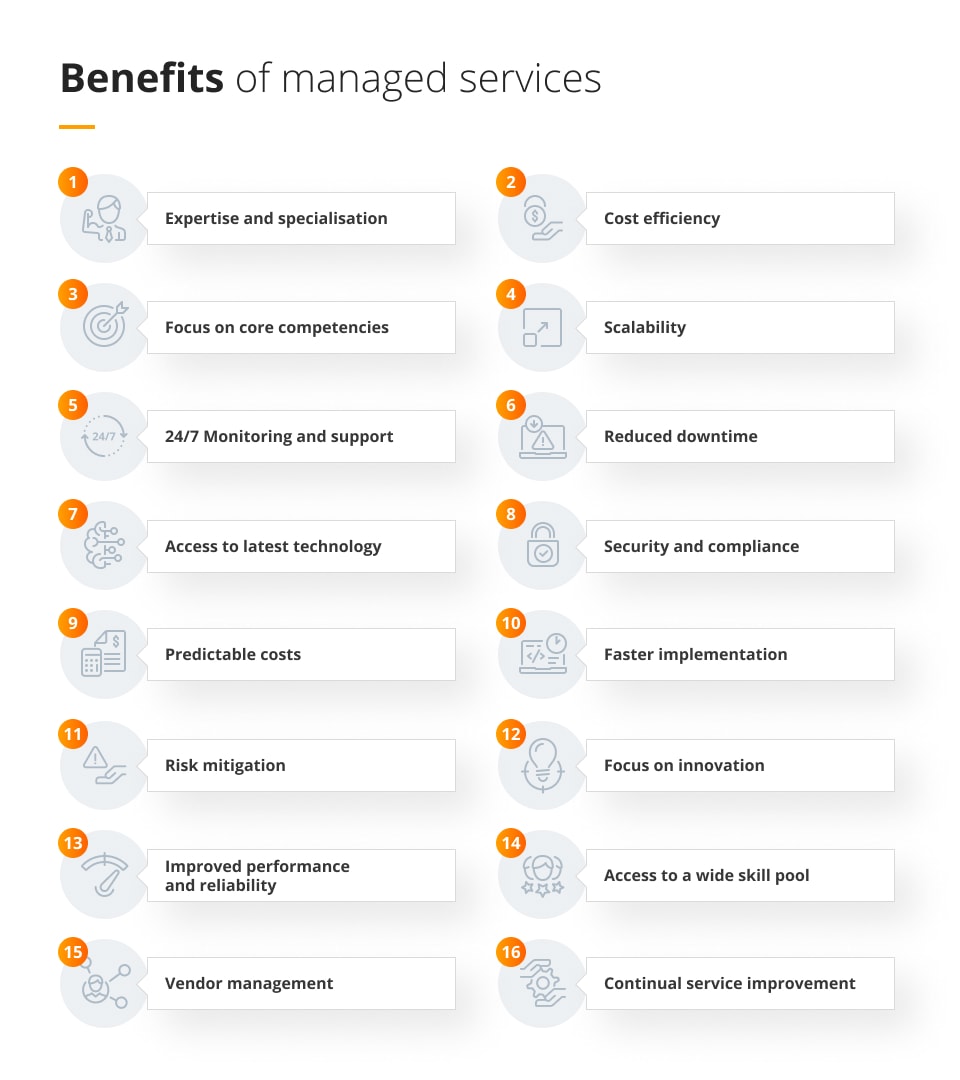 - Focus on core competencies: By outsourcing certain tasks to managed service providers, businesses can concentrate on their core competencies and strategic goals.