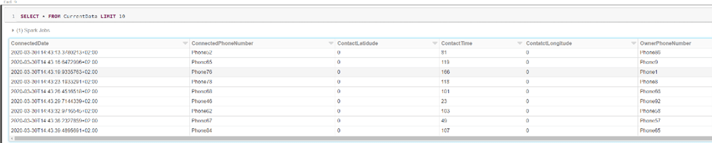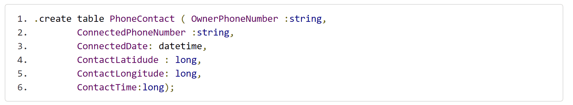 In the case of Azure Data Explorer, data processing, including matching data from phones with the data about identified confirmed cases of infection, can be carried out with a query in KQL. An example of such a query is shown below: