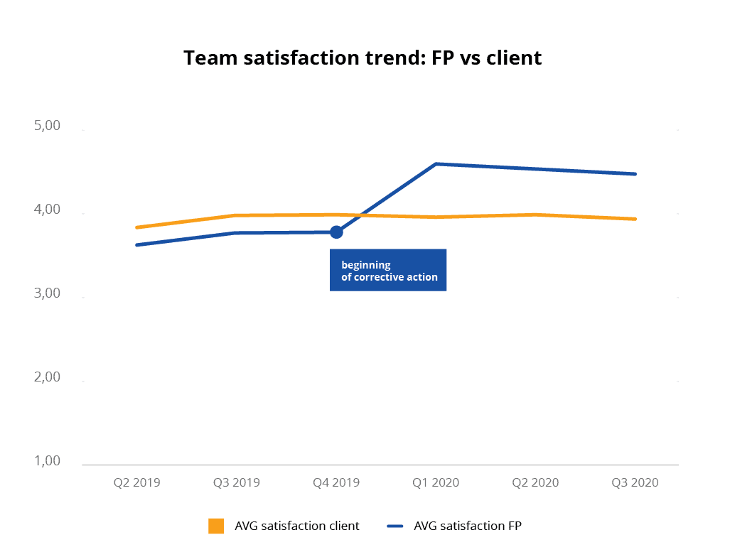 Higher team satisfaction resulted in a surge in Delivery Success Indicators for the project, increased trust from the client and a greater percentage of sprints delivered on time… and it is a pretty important Key Performance Indicator.