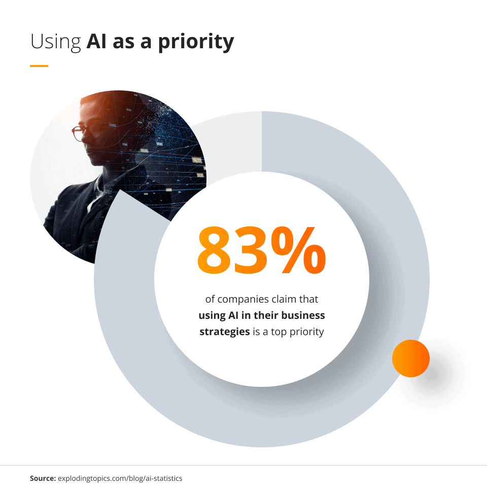 No matter the type of business or the industry, Artificial Intelligence can have a great impact on how companies operate and what results they have. No wonder as much as 83% of companies claim using AI in their business strategies is a top priority.