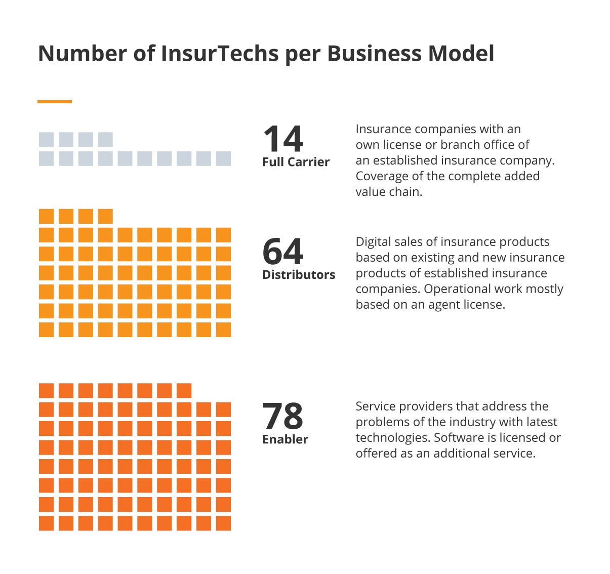 There are three primary business models in the German insurance industry: enabler, full carrier, and distributor.