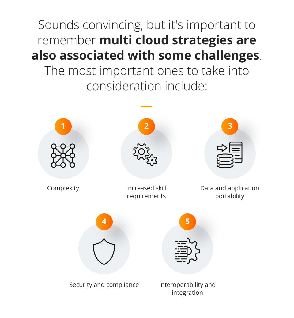 Sounds convincing, but it’s important to remember multi-cloud strategies are also associated with some challenges. The most important ones to take into consideration include:
