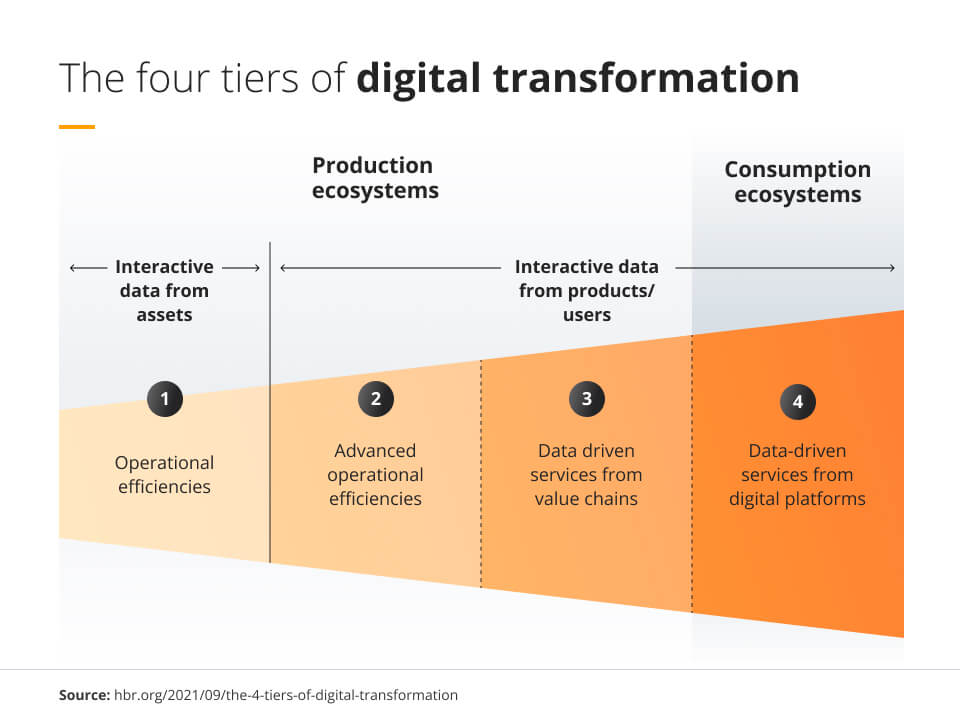 Harvard Business Review’s article on ‘The Four Tiers of Digital Transformation’ describes how episodic data is increasingly becoming interactive through the use of continuous ‘real-time’ sensors and tools. This allows companies to continuously track their assets and monitor their productivity through the constant stream of highly valuable data being collected.