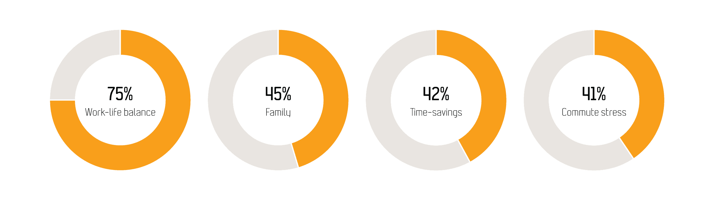 Remote work may also bring serious health benefits as 78% of people said having a flexible job would allow them to be healthier (eat better, exercise more, etc.) and 86% said they’d be less stressed.