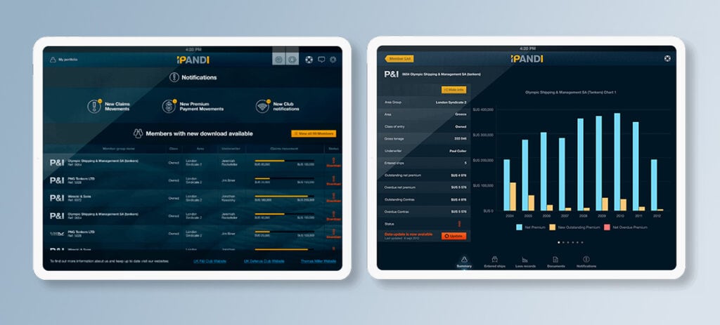 Thomas Miller contracted Future Processing to be part of a project to build a native iPad/iOS App – iPandi – to give more efficient and quicker access to data for their clients. Up until that point, UK P&I and UK Defence Club members had to contact the relevant offices to glean this information. The priority was to give customers access to their own fleet data including both record statements and individual ship documentation instantly and on-line.