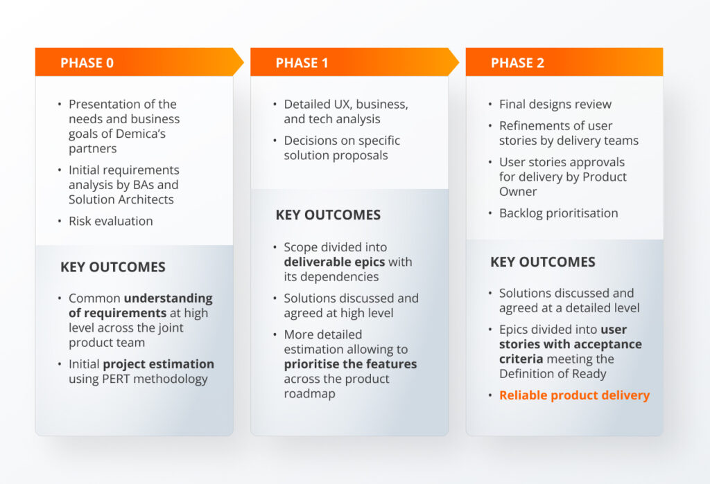 Thanks to the structured process, Demica offers their clients even more reliable delivery of the relevant features within the scope, time, and budget estimated already at an early discovery phase.