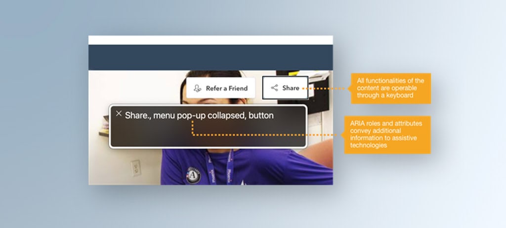 - Color contrast – making the color contrast appropriate for users with visual impairments.