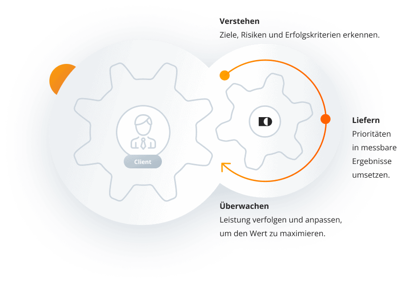 - Strategische, kontinuierliche Wertschöpfung – Fortlaufende, ROI-gesteuerte Bereitstellung, die auf Ihre langfristigen Ziele ausgerichtet ist. Wir behalten den Geschäftswert im Blick, minimieren Risiken und reagieren agil auf neue Anforderungen.