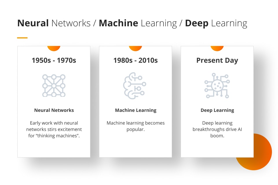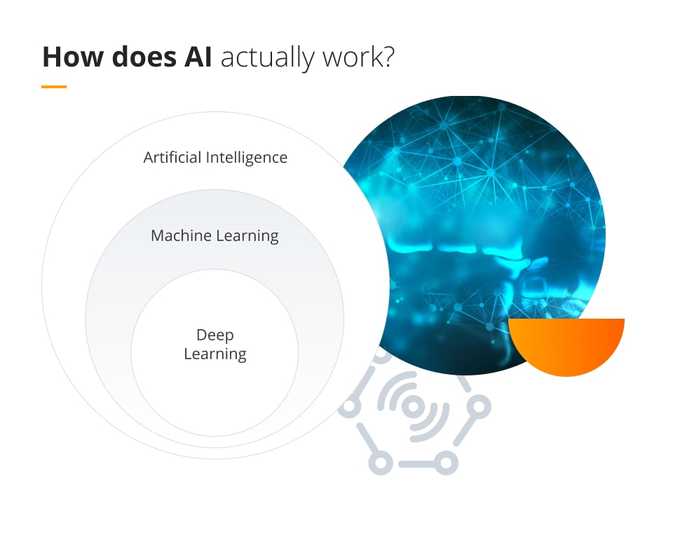 There are many subsets to artificial intelligence that help that AI technology to consolidate and consider problems in a human-like manner. As we mentioned at the beginning of the article, the first subset is machine learning, where the AI system looks at both the given and past data, highlights patterns and makes informed decisions autonomously.