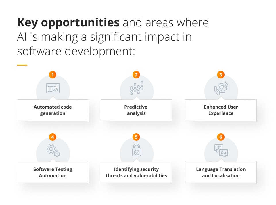 Here are some key opportunities and areas where AI is making a significant impact in software development: