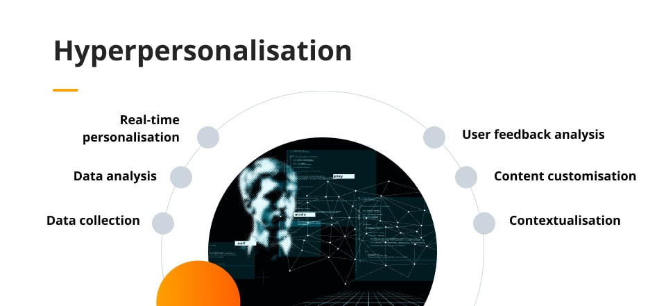 An interesting aspect of UX design in the context of artificial intelligence is hyperpersonalisation – advanced application of AI and data analytics to create highly tailored and individualised user experiences.