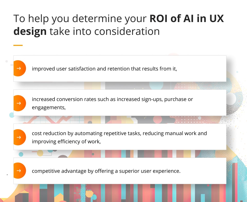 With so many different challenges around it you may be wondering whether the investment in AI in UX design is worth the outcome. It’s a tricky question, as answering it involves assessing both the initial costs of implementation of AI solutions and the potential benefits that accrue over time.