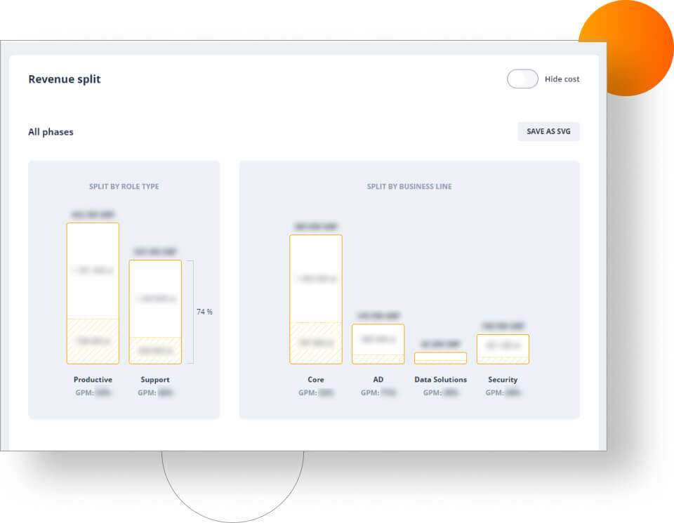 The cost reports section has been greatly expanded, especially compared to its previous version. It provides detailed information for team leads, account managers, and other executives, so that they can be fully informed about expected expenses for the given month, specific breakdown of costs, and margins. Put simply, the application allows for detailed forecasting and budget planning.