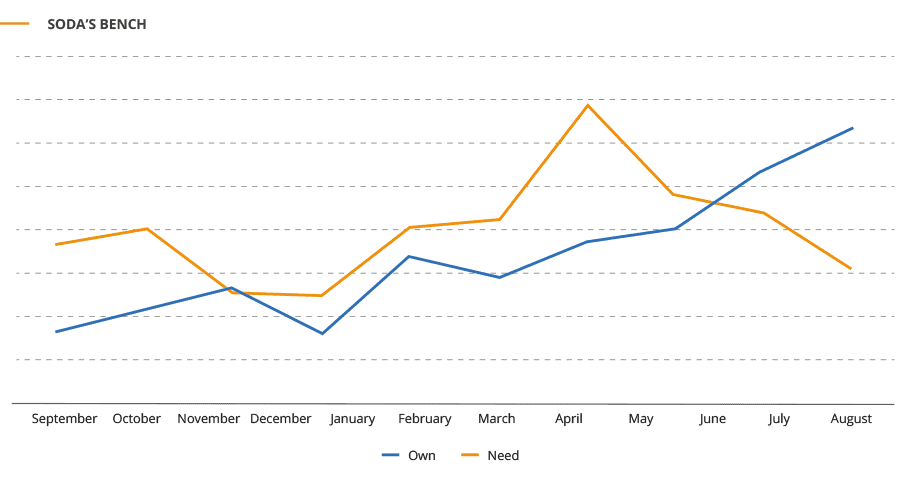 Below, you can see an exemplary graph showing how the SoDA bench has functioned in recent months (actual data are available only to SoDA members).