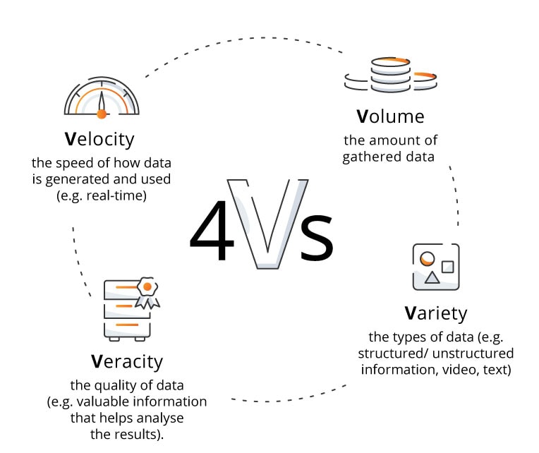 Big Data is defined by four characteristics – the 4V’s of Big Data: